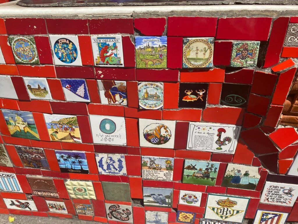Durante nossa visita, encontramos a escadaria bastante movimentada, com muitas pessoas aproveitando o local para fotos e passeios. Por conta do grande fluxo de visitantes, não foi possível dedicar muito tempo para observar todos os detalhes e capturar fotos mais tranquilas, mas a energia vibrante do lugar era inegável.